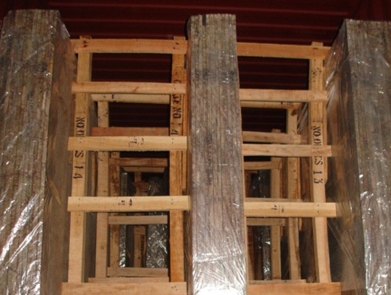 We pack stone tiles directly into the wooden crates but before started packing each wooden crate is first in-lined with foam sheet or thermocol sheet to protect stones against damage. Between the polished surfaces we always put thin polythene sheet to protect the surface from undue scratches.